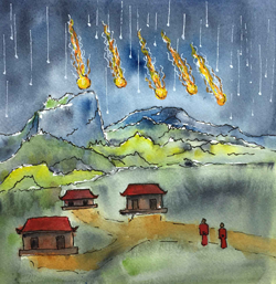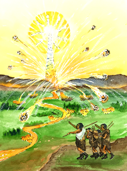 Support for the celestial intruder, an electrical and magnetic brown dwarf star, comes from the concepts of the Electric Universe (EU), a group of independent scientists led by Wallace Thornhill and David Talbott who authored The Electric Universe and Thunderbolts of the Gods. Their ideas steer away from the electrically neutral, gravity-driven universe. Their beliefs and research lead toward an electrical-magnetic universe that not only provides stability for our Sun and its planetary system, but also gives causes for infrequent catastrophism when the two star systems of the Sun and a brown dwarf, called Nemesis, clash. Charge separation and charged celestial bodies can create violent high-energy arc discharging between bodies. The evidence of these arc discharging events that caused Earth's Great Deluge are readily seen on the surfaces of most solar system planets and moons. In the Thunderbolts of the Gods, the claim is made that man has witnessed such events and recorded them in rock art, friezes carved on the walls of megalith temples, and in written and verbal traditions. These witnessed events are catalogued by David Talbott as archetypes of the ancient sky which are plasma displays on an interplanetary scale. Most times, as the Nemesis star system crossed into the Sun's planetary system, ancient mankind was lucky enough to witness arc discharges and other electrical plasma displays without Earth being harmed.